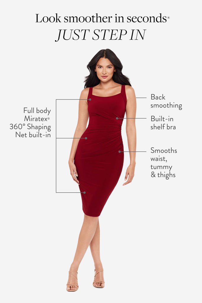 Powered by Miratex® 360° Shaping Net: invisible targeted compression for tummy, waist & thighs. Plus built-in bust support and back smoothing.