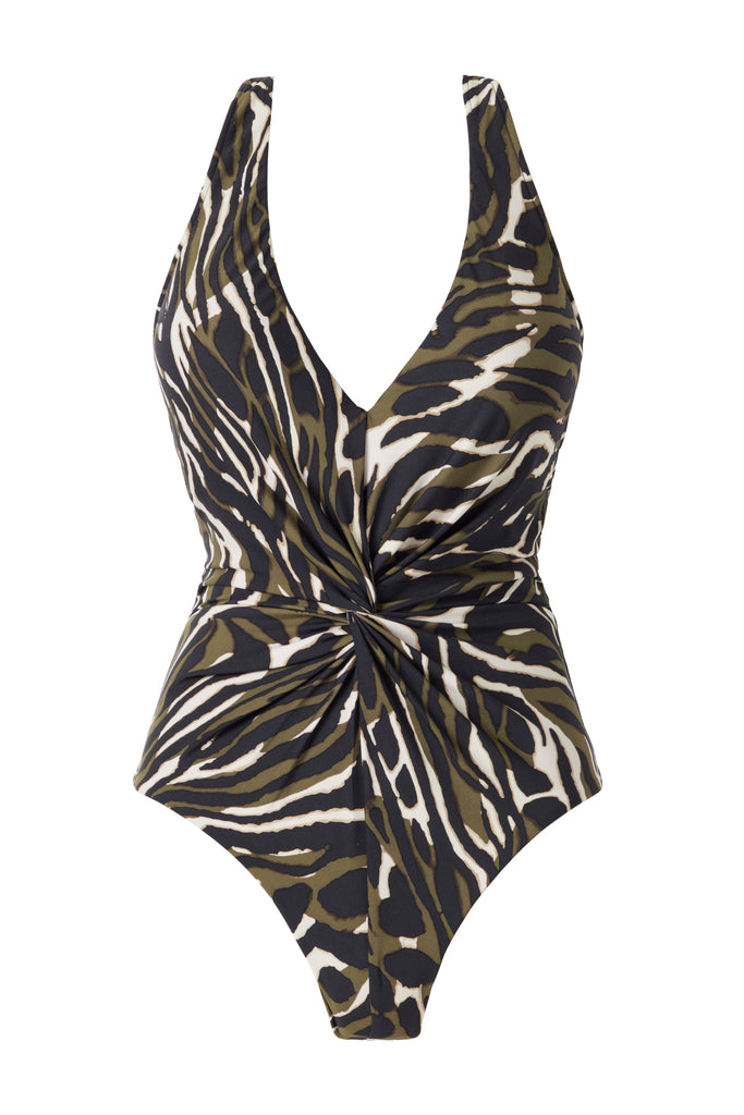 Featured in the Safari Sands print, dynamic stripes and shadows in alluring neutrals.