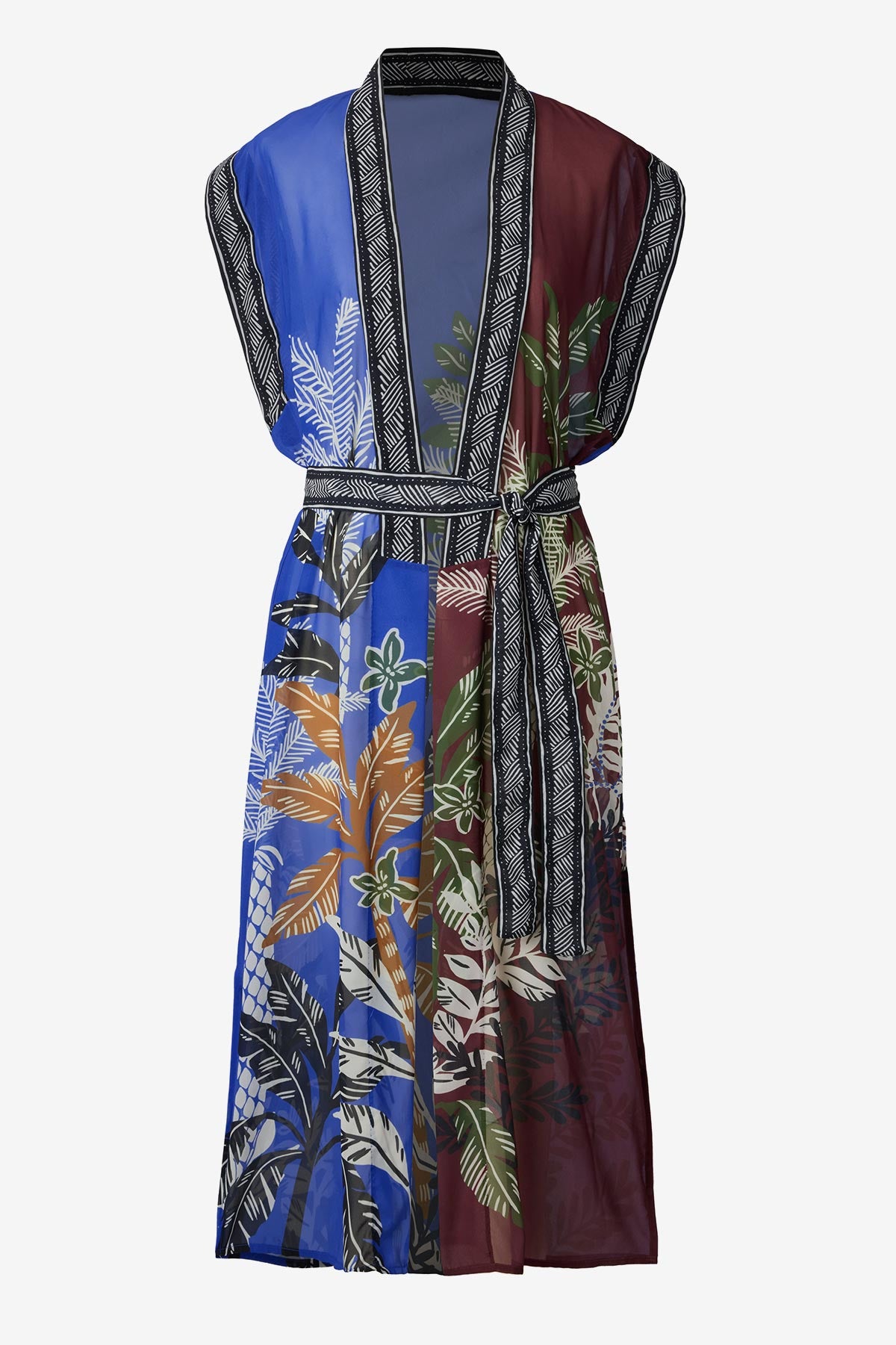 Crafted in semi-sheer georgette, this duster cover up features airy sleeves and side slits for easy movement. Cinch it at the waist with the detachable belt—or leave it open for a relaxed silhouette.