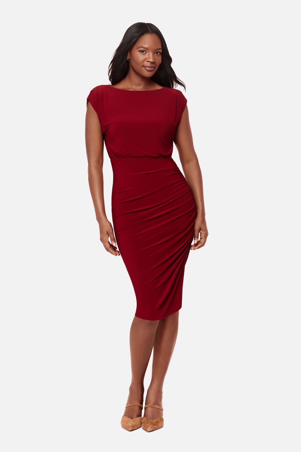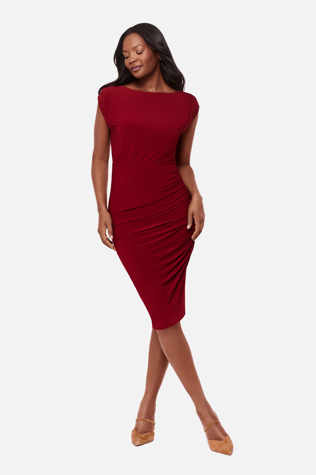 Strategically draped to flatter. Crafted in soft Miramatte™ Jersey that packs like a dream.