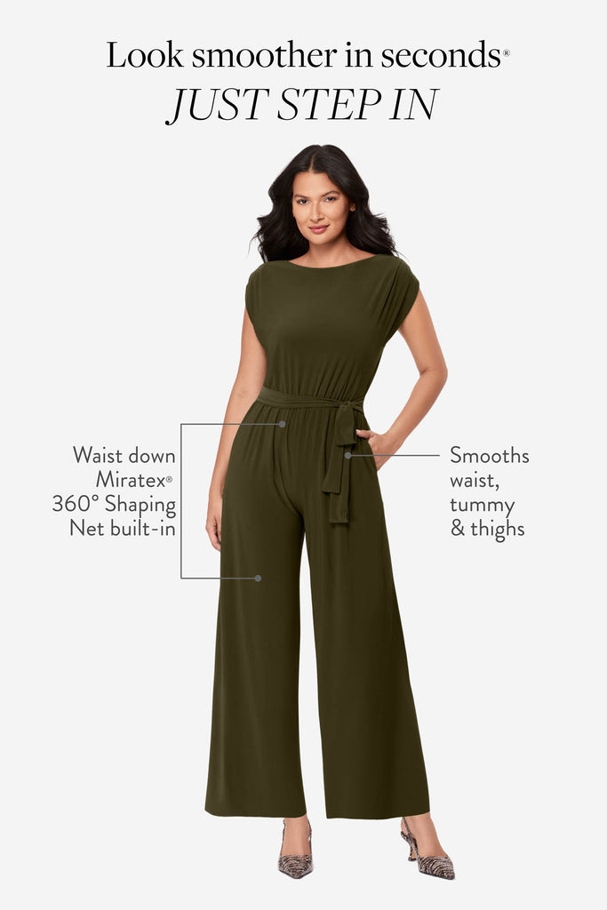 Powered by Miratex® 360° Shaping Net: invisible targeted compression for tummy, waist & thighs.