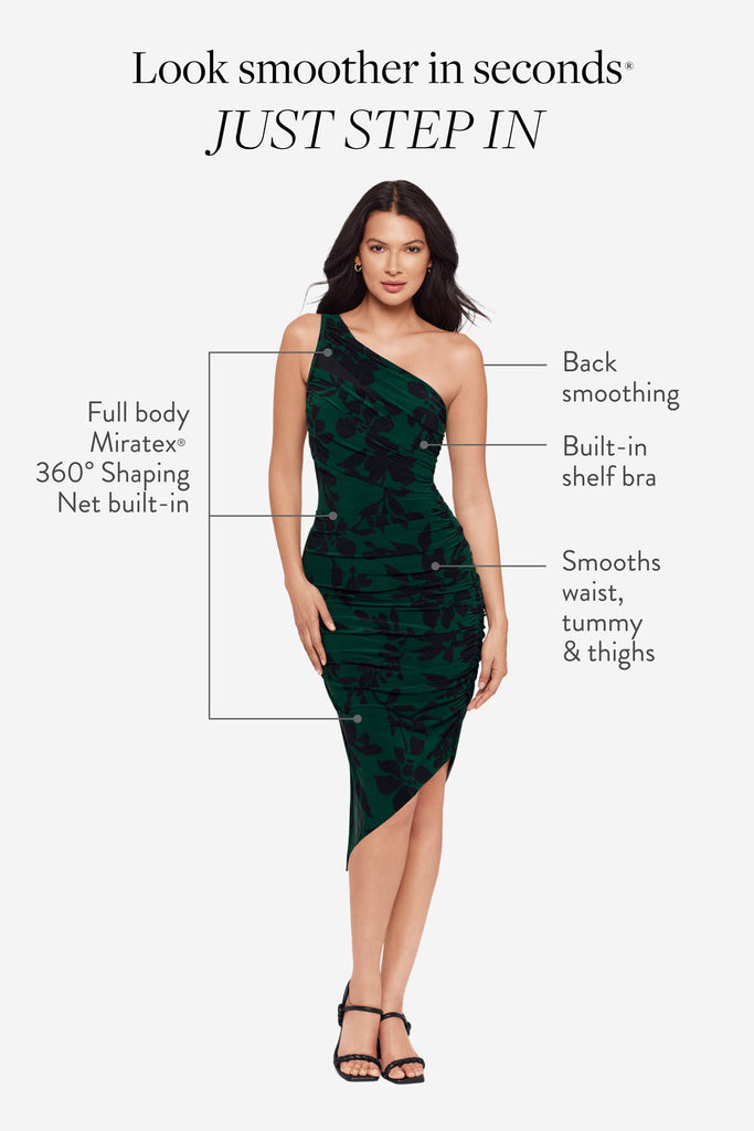 Powered by Miratex® 360° Shaping Net: invisible targeted compression for tummy, waist & thighs. Plus built-in bust support and back smoothing.