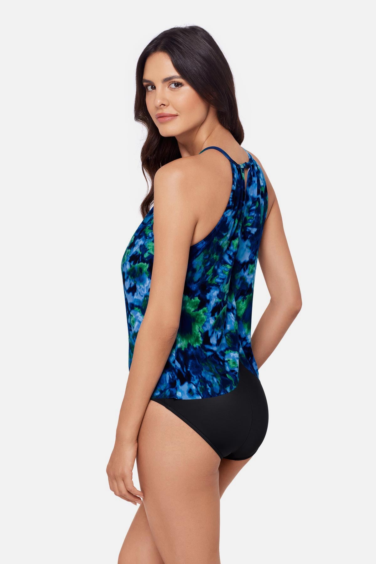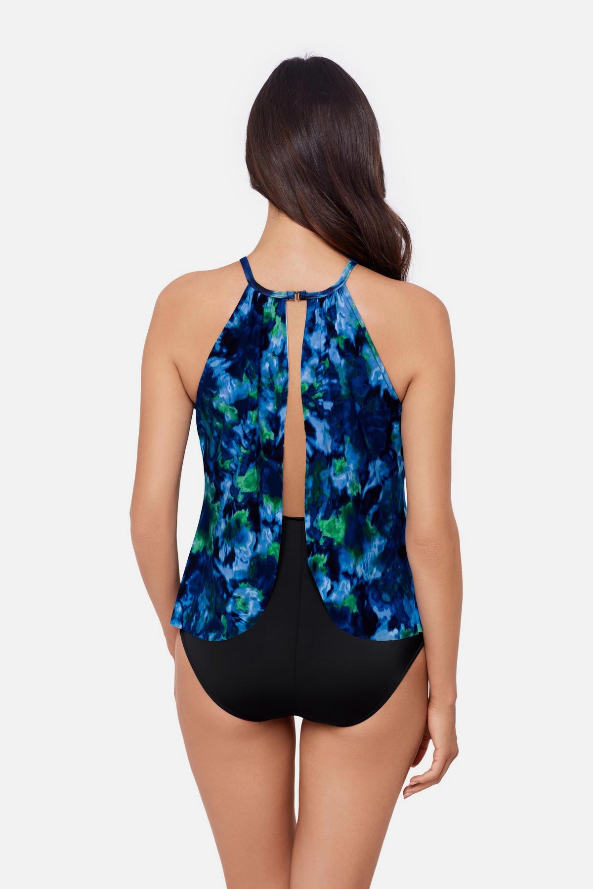 • Halter styling with hook back closure