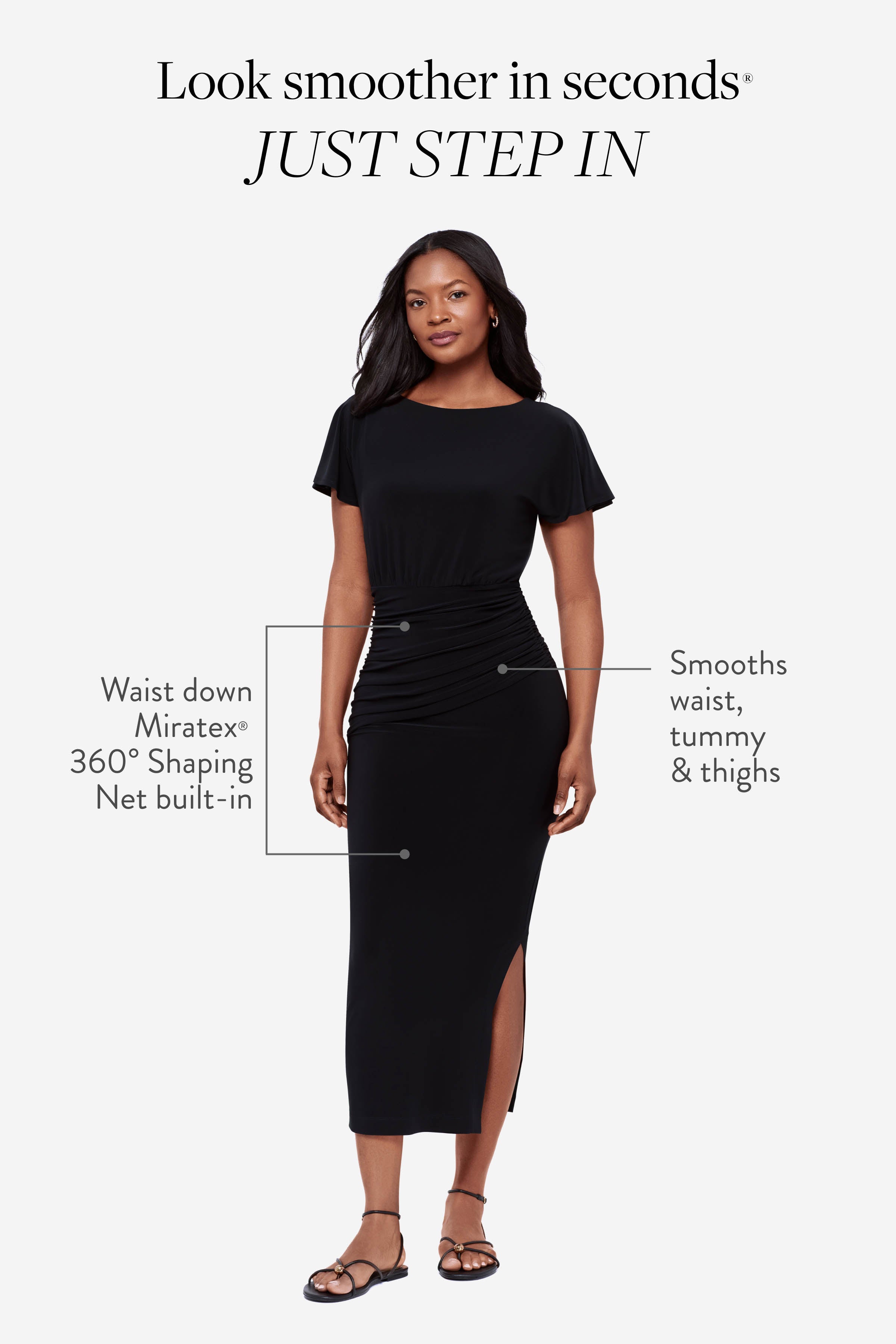 • Just step in & shimmy for a perfect fit