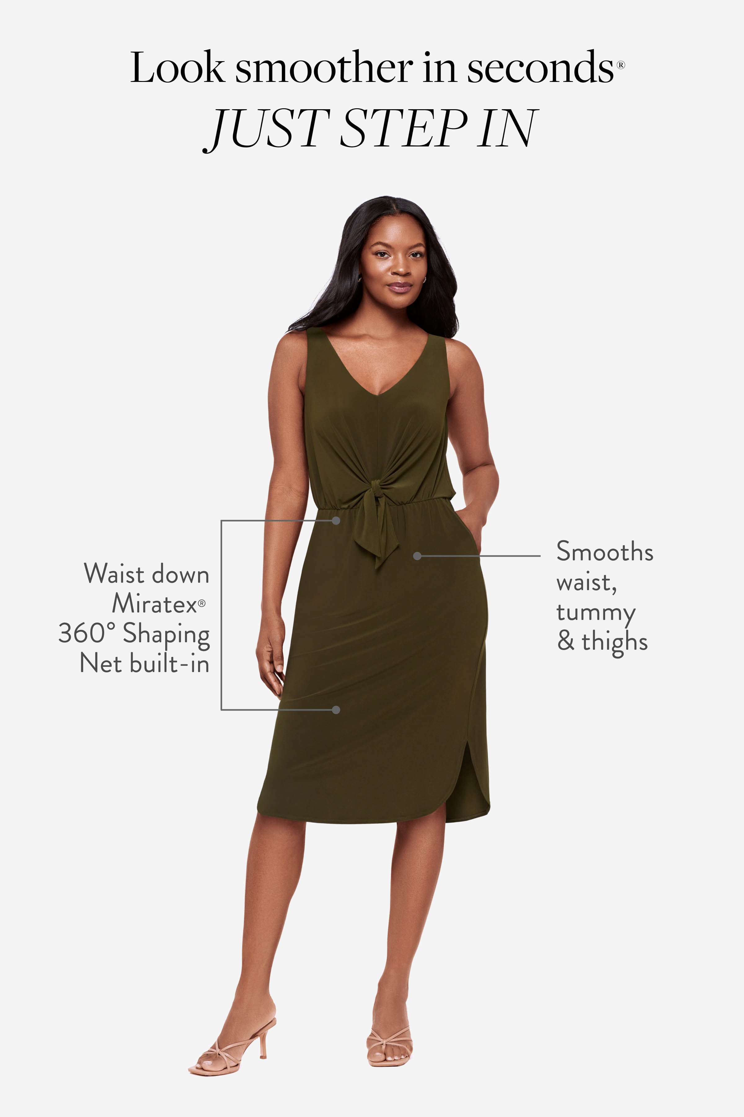 • Just step in & shimmy for a perfect fit