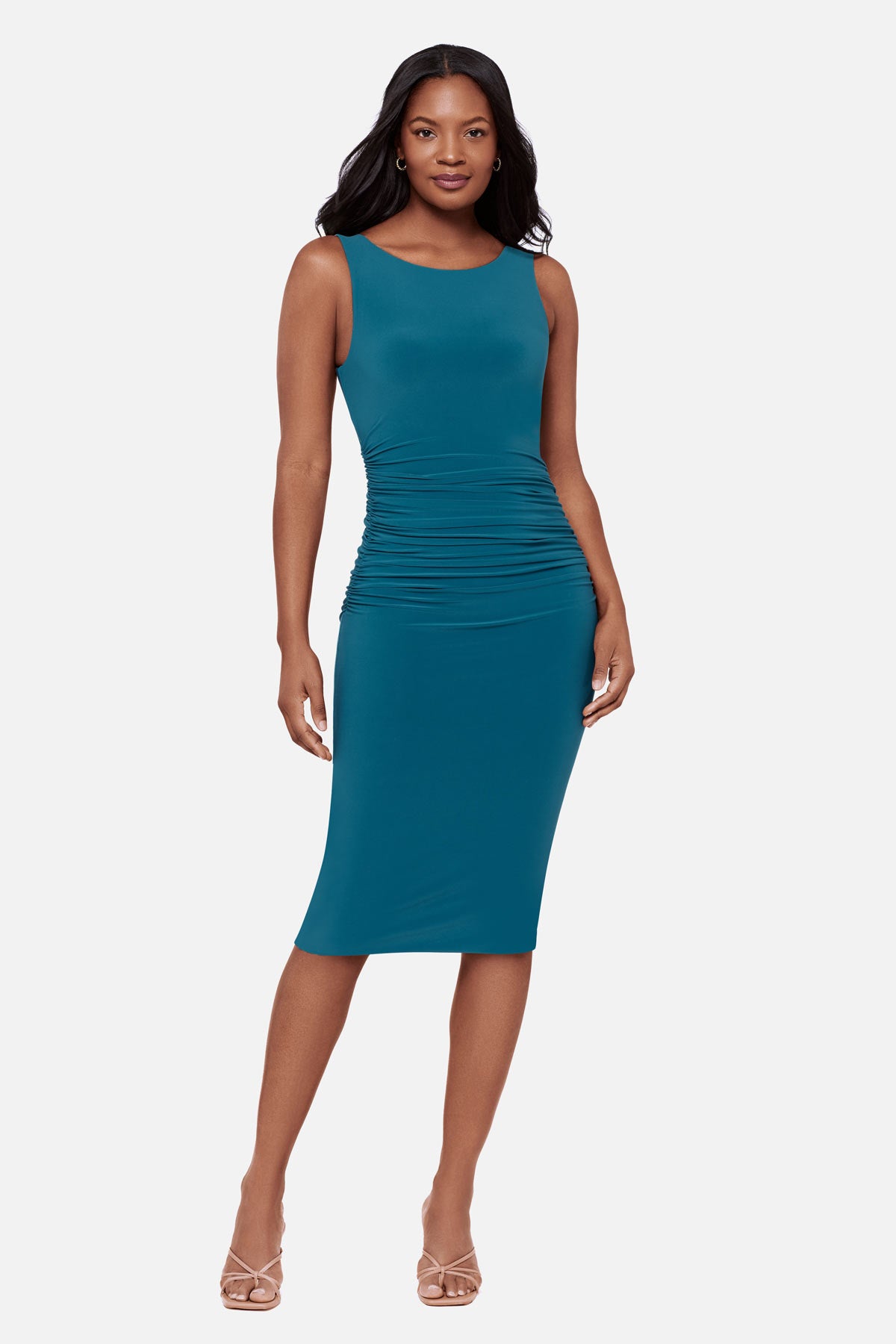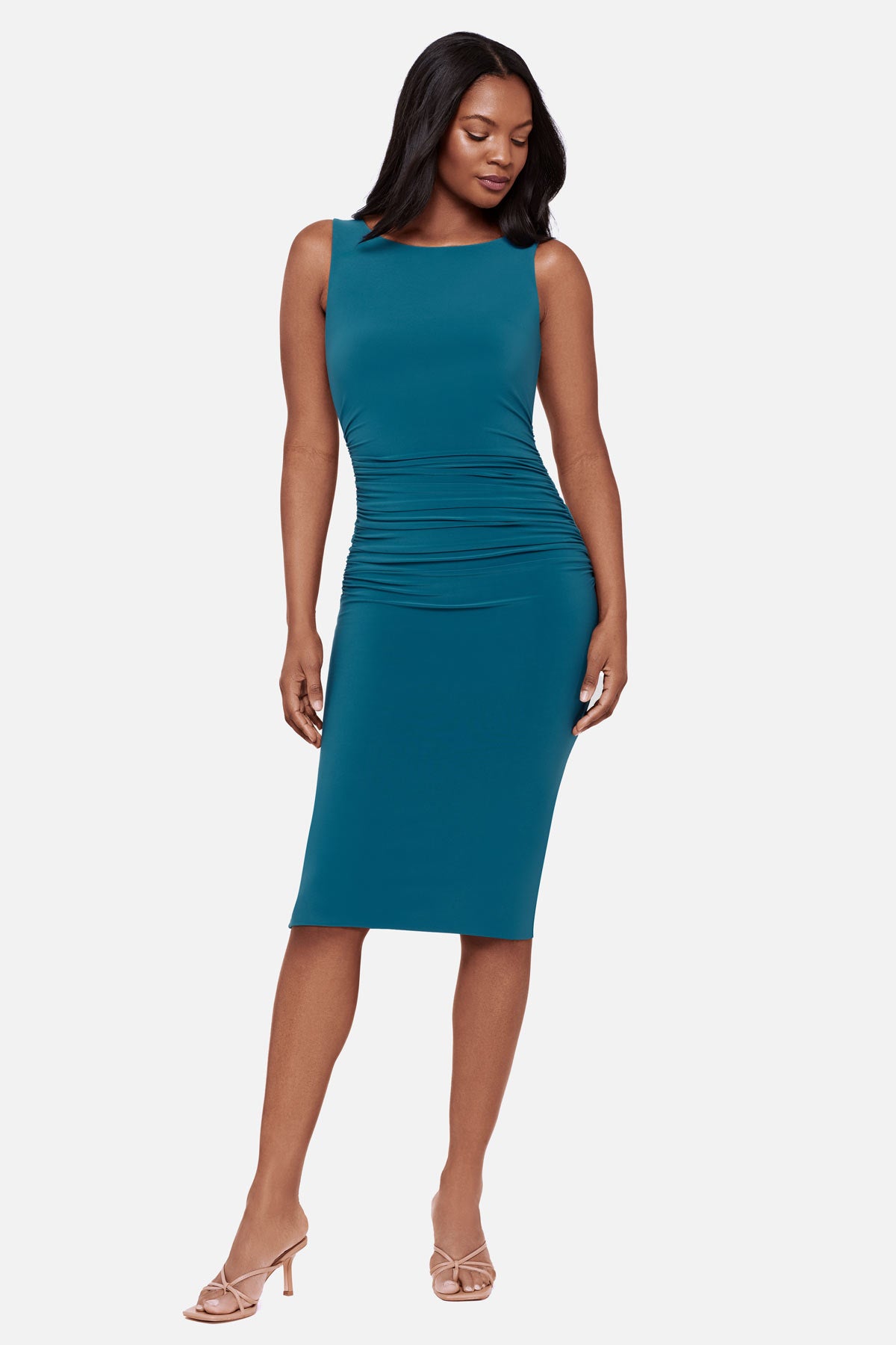 Strategically draped to flatter. Crafted in soft Miramatte™ Jersey that packs like a dream.