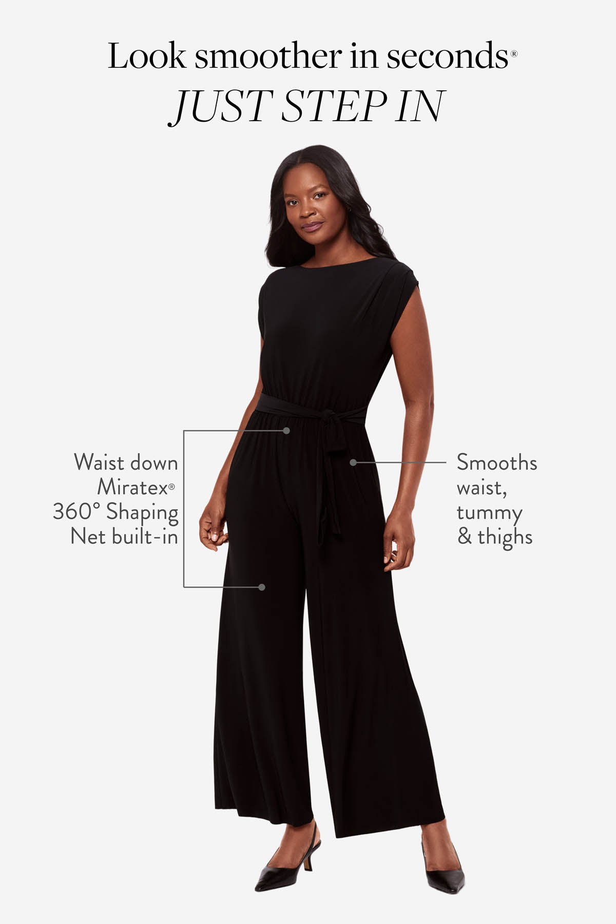 Powered by Miratex® 360° Shaping Net: invisible targeted compression for tummy, waist & thighs.