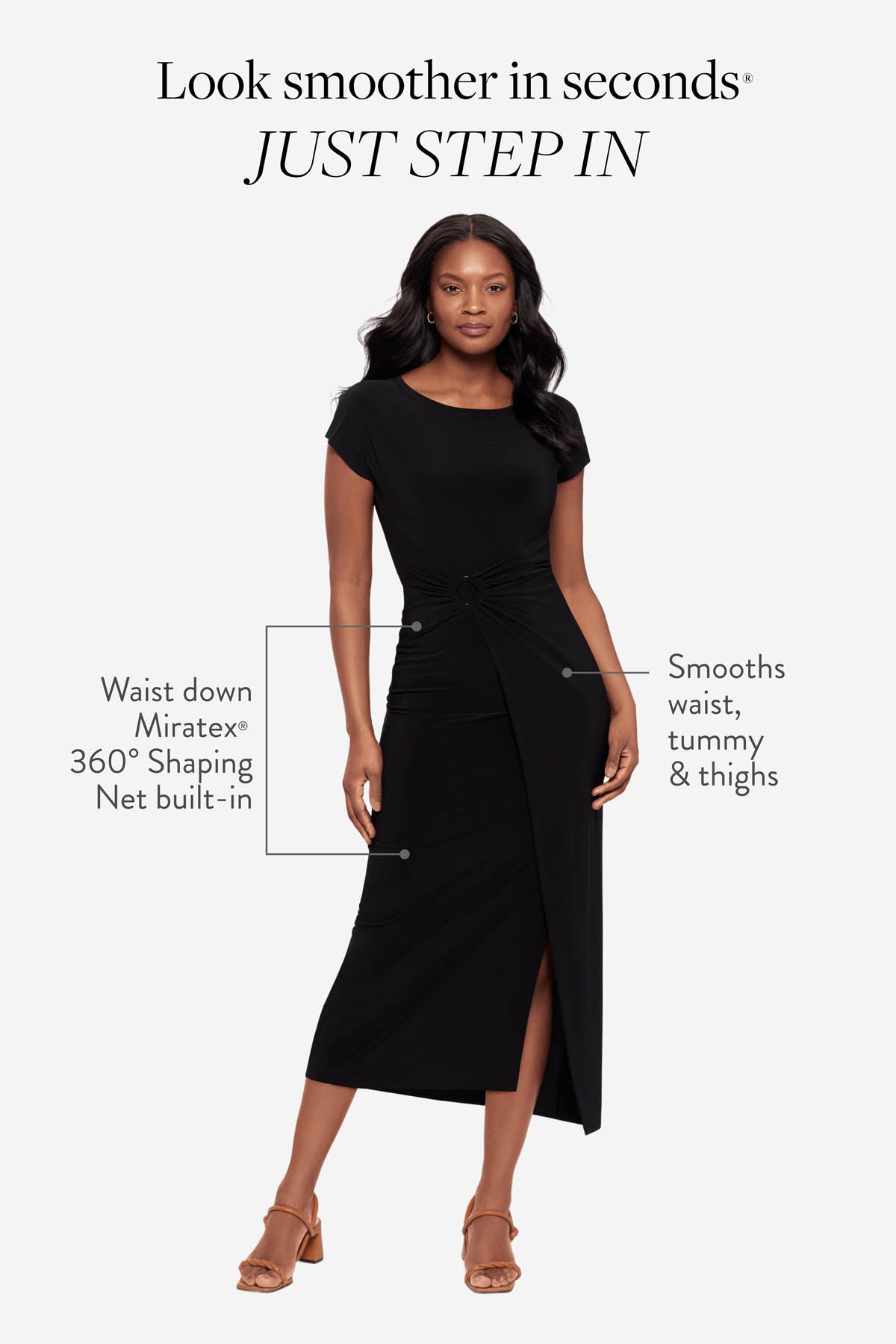 Powered by Miratex® 360° Shaping Net: invisible targeted compression for tummy, waist & thighs.
